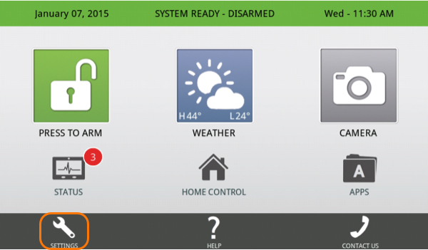 - Press Settings then enter the default installer code 1111.