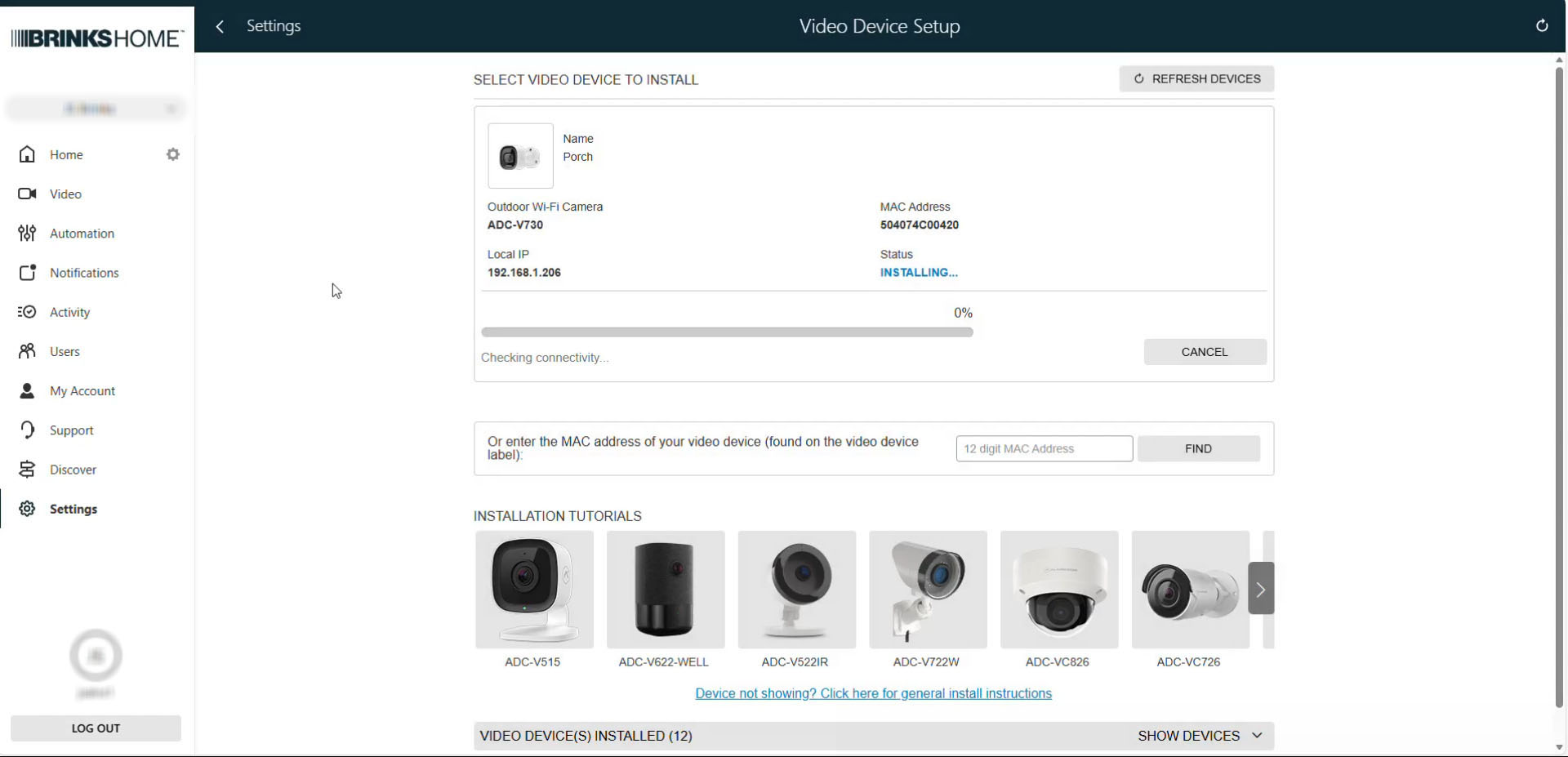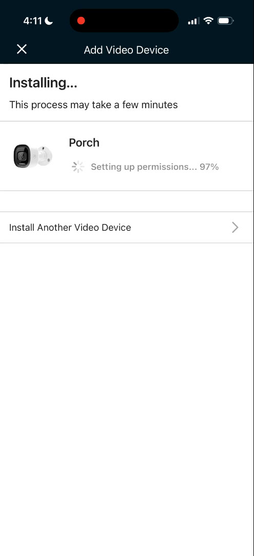 - Once the device connects to the Wi-Fi network, the device continues to complete the install on your account. Once the installation is complete, verify the video device works properly.