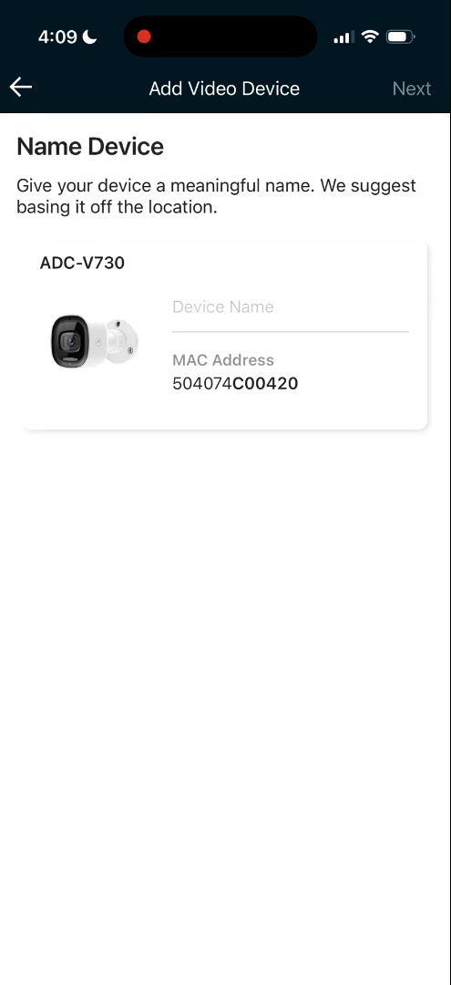 Note: The camera must be connected to Wi-Fi first so it can be added to your account.